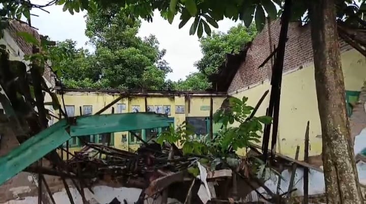 “Hujan deras dan angin kencang menyebabkan bangunan tidak kuat. Ada tiga ruang kelas, gudang, dan kantin bangunan lama yang rusak parah,” ujarnya saat dikonfirmasi, Kamis (15/1/2026).