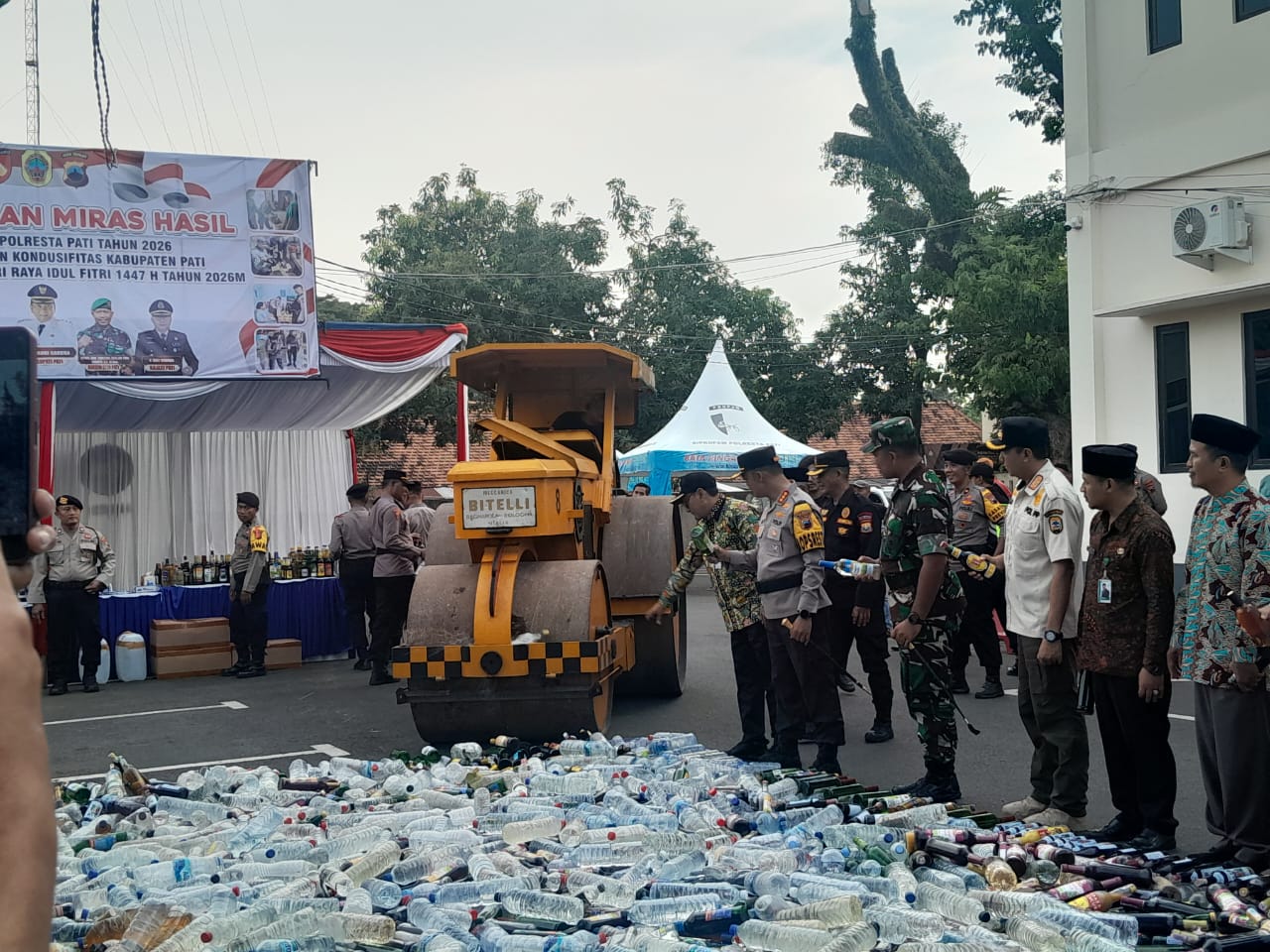 Jurnalindo.com, – Menjelang perayaan Idul Fitri, ribuan botol minuman keras (miras) hasil sitaan selama Operasi Penyakit Masyarakat (Pekat) 2026 dimusnahkan oleh jajaran kepolisian.