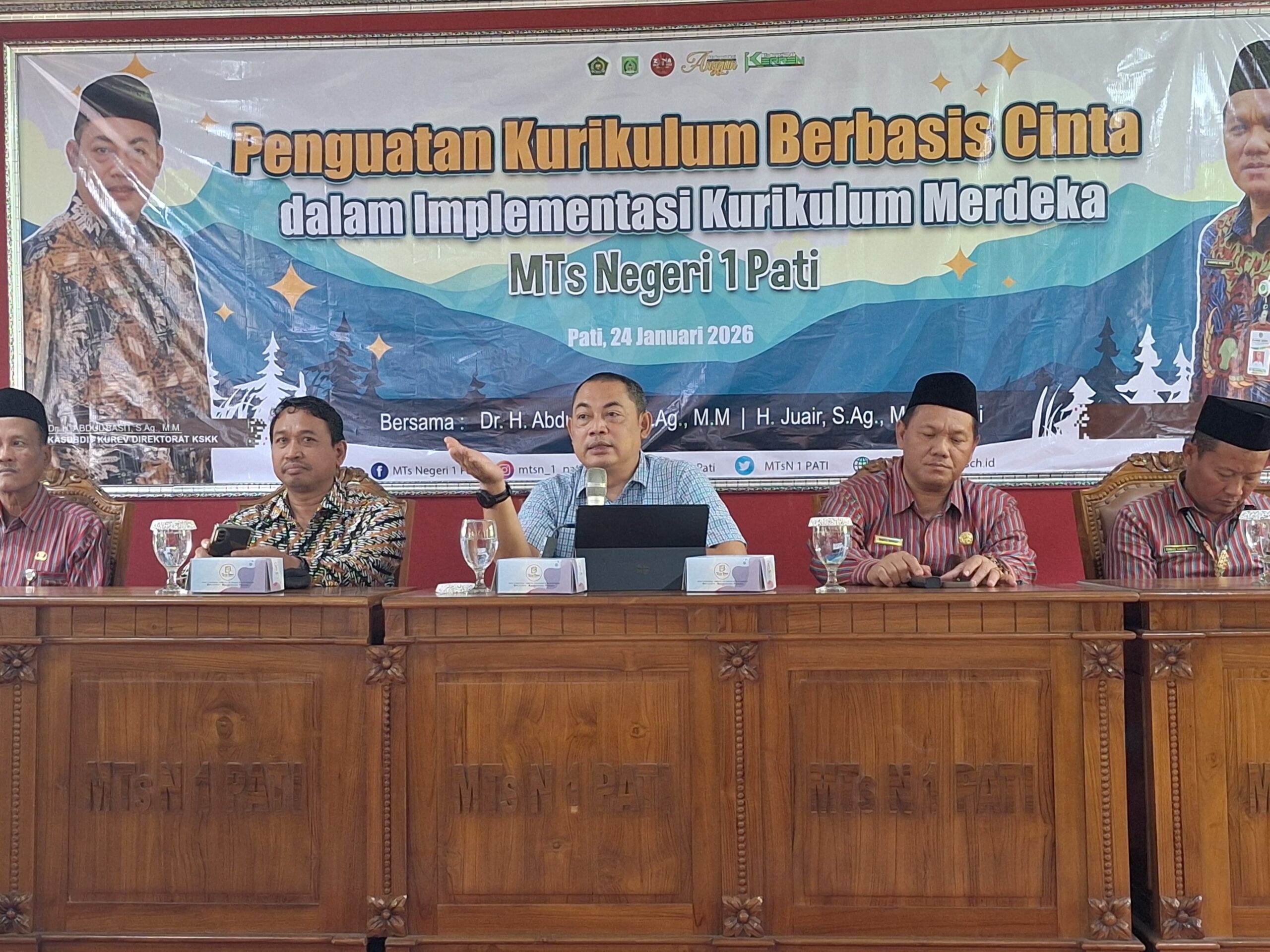 Jurnalindo.com, Pati – Kasubdit Kurikulum dan Evaluasi Direktorat KSKK Kemenag RI, Abdul Basit hadir sebagai narasumber utama pada kegiatan Penguatan Kurikulum Berbasis Cinta (KBC) dalam Implementasi Kurikulum Merdeka di MTsN 1 Pati. Kehadiran Basit, didampingi oleh Katim Kurikulum dan Evaluasi Kanwil Kemenag Jateng, Juair pada Sabtu (24/1).