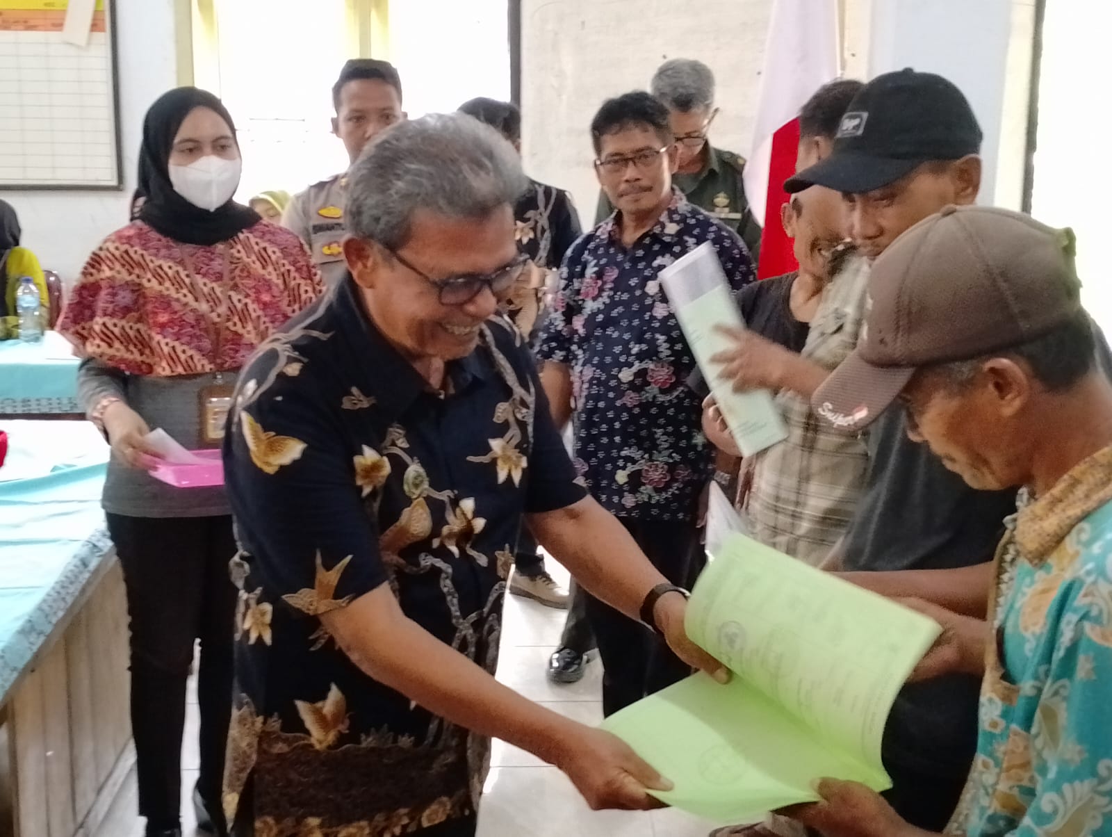 “Siang ini kami pemerintah desa baru saja menyerahkan sertifikat tanah gratis melalui program PTSL kepada 600 lebih warga. Harapannya tentu supaya mereka memiliki sertifikat tanah yang resmi dari pemerintah,” ucap Suyikno.