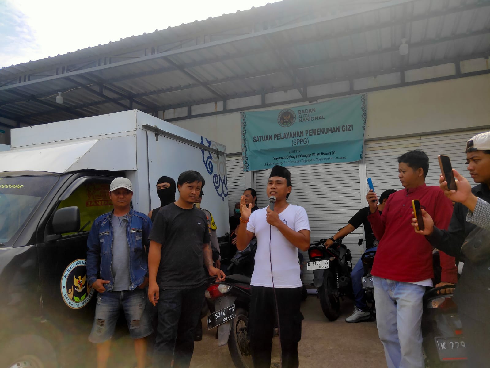 “Menu yang dibagikan ke anak-anak disebut senilai Rp 8.000. Setelah kami hitung, nilainya sekitar Rp 5.000. Lalu sisa Rp 3.000 itu ke mana? Kami juga menemukan ada buah yang kualitasnya tidak layak,” tegasnya saat berorasi.