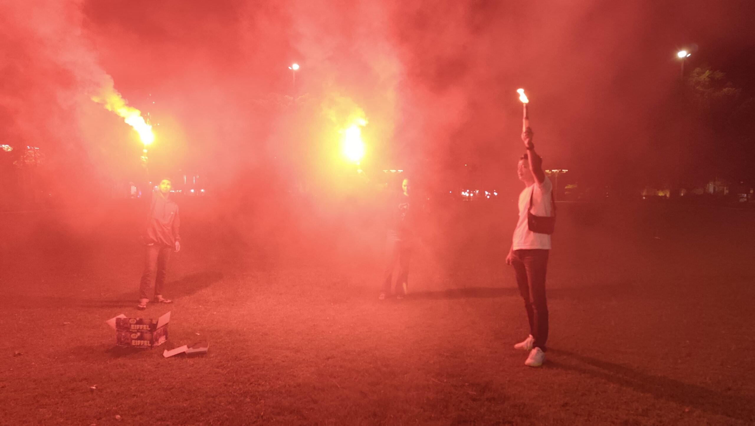 Sekitar pukul 21.05 WIB, dentuman kembang api terdengar bersahutan, disertai kepulan asap merah dari suar yang dinyalakan di tengah lapangan alun-alun. Aksi tersebut menarik perhatian warga yang tengah beraktivitas di sekitar lokasi.